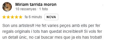 Son uns artistes!! He fet varies peçes amb ells per fer regals originals i tots han quedat increïbles!! Si vols fer un detall únic, no cal buscar mes que ja els has trobat!
